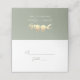 Elegante Hochzeitsstimmung mit romantischen Imitaten, goldene Geliebten, weicher, schlauer grüner Hintergrund, individuell definierbare Namen und Datum. Ideal, um die Gäste an einem formellen oder botanischen Hochzeitsempfang zu empfangen. Der geklappte Zeltstil macht es einfach auf den Tischen des Abendessens zu sehen. Koordiniert mit einer voll passenden Salbei- und Goldhochzeit Suite.