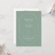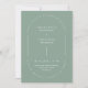 Cette élégante faire-part de mariage moderne et minimaliste dispose d'une arche élégante avec un texte circulaire "joignez-vous à nous pour célébrer le mariage de" élégamment placé au sommet, ajoutant une touche romantique et formelle sur un arrière - plan vert sage. La police serif sophistiquée met en évidence les noms du couple avec un look propre et raffiné. Le dos de la carte comprend de l'espace pour une photo personnelle du couple heureux et un code QR personnalisable pour les invités à RSVP et trouver plus de détails. Essayez d'être vert avec cette invitation tout-en-un écologique moderne en coupant sur les RSVP supplémentaires et les cartes de détails. Ajoutez simplement votre propre code QR au verso de l'invitation pour que vos invités puissent accéder à RSVP et découvrez plus d'informations sur votre mariage. Customisez les noms et le libellé en quelques étapes simples, et personnalisez la carte d'invitation avec votre photo du couple heureux pour lui donner une touche unique et personnelle. Veuillez noter : les expressions "gentiment joignez-vous à nous pour célébrer le mariage de", "réception immédiatement après la cérémonie" sur le devant et "la faveur de votre réponse est demandée" sur le dos, ainsi que les lignes et les éléments graphiques de l'illustration, ne peuvent pas être modifiés, supprimés, déplacés ou modifiés. Elles sont réparées. Si vous devez modifier la couleur, vous pouvez customiser la carte d'invitation. Vous pouvez facilement personnaliser cette invitation avec votre propre texte et la partager numériquement par texte, e-mail ou médias sociaux. Vous pouvez également envoyer une version imprimée à vos invités ou faire les deux : en envoyant une version numérique et en faisant un suivi avec une copie imprimée pour une expérience plus personnalisée.