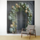 Hübscher, hellgrüner und goldgelber Ballonbogen mit dunklen Vorhängen, Wandteppichen, eleganter Kulisse für Fotos zum Silver- oder Goldjubiläum, Hochzeiten oder Veranstaltungen