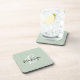 Dieser elegante personalisierte Untersetzer zeichnet sich durch ein Monogramm und einen Vornamen in modernem Schwarz-Weiß-Skript auf einem schlauen grünen Hintergrund aus.