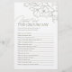 Unterhalten Sie Ihre Gäste mit diesem unterhaltsamen "Was hat der Bräutigam gesagt?"-Spiel, mit eleganter, handgezeichneter Blume und modernen Schriftzeichen-Details, in dunkelgrünen und weißen Farbtönen, einfach und romantisch, mit einer großartigen Aktivität für modernes rustikales Brautparty, Hochzeitsfeiern auf dem Lande und schlichte Hochzeitsfeiern im Sommer und Winter. Vollständig anpassbar mit allen Farben, um Ihre Hochzeit Thema. Sehen Sie sich alle Brautparty-Spiele an.