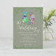 Sage Green Dinosaur Wedding Invitation Fun Modern Colorful T-Rex Bride and Groom Design