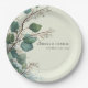 An elegant sage green eucalyptus paper plate featuring boho watercolor greenery perfect for wedding and baby shower celebrations.