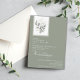 Moderne und trendige Hochzeiten laden mit schlankem, grünem und weißem Hintergrund mit Eukalyptus-Blätter auf der Vorderseite ein. Ein schönes Hochzeitsring und ein Blätter-Design sind auf der Rückseite. Wohnung 5"x7" einladen.