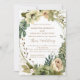 This wedding invitation features a soft, romantic botanical design with a graceful circular greenery frame that gently draws the eye to the center. Delicate watercolor florals in muted sage, ivory, and blush tones surround the layout, creating a natural, garden-inspired aesthetic with a timeless feel. Elegant typography pairs classic serif lettering with flowing script accents, adding a refined and sophisticated touch. Perfect for garden, rustic, or nature-inspired weddings, this invitation offers a beautiful balance of softness and structure, making it an ideal choice for couples seeking understated elegance with a fresh, organic look.