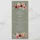 Donnez un ton intemporel à votre grande journée grâce à ce programme de cérémonie de mariages floraux sauge. Doté de roses d'aquarelle romantique en terre cuite et dans les tons vifs, ce design double-face comprend votre plan de cérémonie sur le devant et les détails de la fête de mariage sur le dos. Idéal pour les mariages d'automne ou de jardin, ce programme allie élégance classique et charme rustique. Personnalisez facilement tout le texte pour convenir à votre célébration.