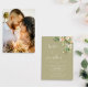 Célébrez votre amour avec ce faire-part de mariage photo vert sage romantique. Doté d'un arrière - plan vert doux, de délicats motifs floraux en pêche et blanc et d'espace pour votre photo préférée, ce design allie élégance intemporelle et touche personnelle. Le script et les polices serif ajoutent une touche moderne mais classique, ce qui en fait un lieu idéal pour les mariages de jardin, les cérémonies de printemps ou les célébrations rustiques-chic. Personnalisez facilement avec vos détails de mariage et téléchargez votre photo de fiançailles pour un souvenir vraiment mémorable.