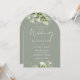 Diese moderne Weise grün botanische grün Blätter Blumenzwiebeleinladung kann mit Ihren Informationen in eleganter Typografie mit Ihren Website-Details Hochzeit und Ihrem QR-Code auf der Rückseite personalisiert werden. Entwickelt von Thisisnotme©