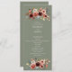 Set einen zeitlosen Ton für Ihren großen Tag mit diesem wunderschönen blumengeschmückten Trauungsprogramm. Dieses doppelseitige Design mit romantischen Aquarellfarben-Rose in Terrakotta und Blütentönen beinhaltet Ihre feierliche Kontur auf der Vorderseite und die Details der Hochzeitsfeier auf der Rückseite. Ideal für Herbst- oder Gartenhochzeiten, verbindet dieses Programm klassische Eleganz mit rustikalem Charme. Personalisieren Sie einfach alle Texte, um Ihre Feier zu Anzug.
