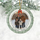 Sage Green Gingham Plaid Circle Photo Christmas Keramik Ornament