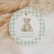 Sage Green Gingham Teddy Bear Baby Shower Geschenkanhänger