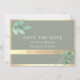 Moderne Save the Date Karte mit eleganter Eukalyptus Aquarell, neutraler Salbei-grüner Hintergrund, Imitaten goldenen Folienakzente und romantischer Schrift. Ideal für botanische, rustikale oder bohelle Hochzeiten.