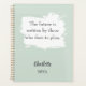 A sage green background, with a white brush stroke. Inspiratiional, motivational Quote: The future is written by those who dare to plan. Personalize and add your name and a year. Gray text.