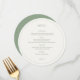 Chic, frais et ludique. Ce modèle de carte de menu circulaire présente un ensemble de polices contemporaines en vert sauge avec un cadre en cercle vert pâle, contre un arrière - plan chic en ivoire. Le dos de la carte comprend un couple de monogramme mis à againsta arrière - plan vert sauge. Il comprend 4 parties repas et boissons.