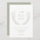 Élégant monogramme avec Faire-part de mariage de conception de crête florale. Dispose d'une ligne d'art fleurie et feutrée dans une belle couleur vert sage. Prêt pour vous à customiser avec les détails de votre journée spéciale. Veuillez naviguer dans la suite Mariage Monogramme et Cimier Floral de Sage Green pour trouver les produits correspondants.