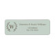 A sage green background. Decorated with a wreath. Personalize and add your name, address and family monogram initial. Warm taupe colored text.