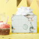Dieses Retro-inspiriert Packpapier enthält eine reizende Ente in einem Party Hut gekleidet und Bug-Krawatte, die einen whimsical Ballon hält. Der weiche, schlängelgrüne Gingham-Hintergrund verleiht dem Ganzen ein gemütliches, rustikales Aussehen.