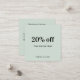 Grün Hintergrund, schwarzer Text vorne: Ermäßigung hinzufügen. Zurück: Personalisieren Sie Ihren Namen, Ihre Adresse, Ihre Telefonnummer, Ihre E-Mail, Ihre Website-Adresse, Ihren qr-Code auf Ihrer Website oder Ihrem Social-Media-Konto.