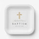 Personalisiert Sage Green Religious Cross Script Boy Taufe Papier Teller.