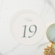 Sage Green Round Wedding Table Numbers 1–19 Dankeskarte