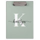 Sage Green Script Monogram Klemmbrett