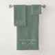 Ein wunderschönes Weiß-Design mit Signatur-Script-Schriftart-Typografie. Ein elegantes und stilvolles Set-Design für Badetücher. Passen Sie das goldene Monogramm Text und Schrift Typografie Badetuch Set an und machen Sie es zu Ihrem eigenen!