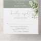 Das Ganze in einer Weise grünen Hochzeitseinladung mit hübschen Saitenlichtern, Blumengrün und eleganter Typografie. Die Einladung enthält eine perforierte RSVP-Karte, die für Sie individuell adressiert oder links als leere Karte für die Handschrift der Adressdaten Ihres Gastes verwendet werden kann. Entwickelt von Thisisnotme©