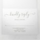 Alles in einem grünen dreiseitigen Weiß mit hübschen Saitenlichtern und eleganter Typografie. Die Einladung beinhaltet Ihre Festgastinformationen und eine abnehmbare RSVP-Karte. Entwickelt von Thisisnotme©