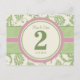 Hochzeitskarten für Viktorianische Blumenkorbe mit grünen und rosa Tischnummern