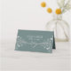 Elegante moderne Kalligraphie-Skript sage grün Hochzeit Platzkarte mit Silberseilherz und Vintag vergoldeten Blütenlace.