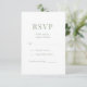 Complete your wedding stationery suite with this sage green wedding RSVP card, featuring a minimalist design and soft botanical tones. The clean layout and refined typography offer a fresh, modern look that pairs beautifully with natural, elegant, or contemporary wedding themes. Perfect for outdoor weddings, earthy palettes, and romantic sage green motifs. Fully customizable with your wording and print-ready to coordinate seamlessly with your invitation suite.
