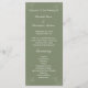 Une carte simple et élégante de mariage vert et blanc. Ajoutez l'ordre de la cérémonie et vos noms sur le devant. Au fond, il y a de l'espace pour les noms des parties nuptiales. Voir le reste de notre collection de Mariages Sage Green ici : https://www.zazzle.com/collections/sage_green_wedding_products-119629254545865136
