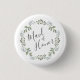 Dieser Knopf zeigt einen rustikalen Aquarellkranz von Salbeigrün. Der Text lautet "Trauzeugin" in der handgeschriebenen Holzkohle-Schrift Kalligrafie.