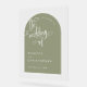 Tirez votre entrée mariage avec ce magnifique panneau d'accueil acrylique vert sauge, avec un arrière - plan en arc tendance et élégant script de calligraphie manuscrit. Conçu avec une esthétique moderne, ce panneau présente magnifiquement l'expression "Bienvenue au mariage de", vous permettant de le personnaliser avec vos noms et date spéciale. Une touche intemporelle et sophistiquée pour accueillir vos invités dans le style ! Toutes les couleurs sont modifiables. © Kimbellished, LLC