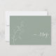 Planifier un mariage est assez difficile sans avoir à se soucier des détails des cartes RSVP. Cette Carte RSVP Sage Vert Script moderne Botanique Sans Menu est parfaite pour les couples qui veulent un look coordonné pour leur mariage stationnaire, mais ne veulent pas avoir à s'inquiéter des sélections de menu. Le design simple, mais élégant, présente une belle typographie lettrée à la main et des floraux d'art en ligne délicats. De plus, l'absence de choix d'entrées signifie que vous n'aurez pas à passer des heures à essayer de comprendre ce que tout le monde voudra manger. Tous les champs de texte sont modèle, vous pouvez donc modifier le 'RSVP' pour lire 'gentiment répondre', 's'il vous plaît répondre', ou changer la langue pour convenir à votre événement de façon unique. Cette carte RSVP s'accorde parfaitement avec le faire-part de mariage correspondant et peut être customisée pour répondre à vos besoins spécifiques en mariage. Asseyez-vous, détendez-vous et profitez de votre grande journée en sachant que vous avez tout pris en charge. Contacter le concepteur pour les produits correspondants. Voir la collection ici : https://www.zazzle.com/collections/modern_sage_green_script_botanical_wedding-119270722625157382 Copyright Invitations élégants, tous droits réservés.