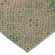 Ein komplexes geometrisches Muster zeichnet sich durch lebendige Farben aus, darunter Grüntöne, Purpel und Blues, die sich durch ein repetitives symmetrisches Design auszeichnen. Kleine Quadrate und Kreise bilden einen kaleidoskopischen Effekt, der ein auffälliges Mosaik schafft.