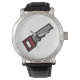Uhr, Vintage Männeruhr mit schwarzem Lederarmband
