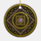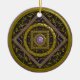 Dieses Sagittarius Thema mandala zeigt einen Amethyststein umgeben von dem Symbol für das Zeichen, die Konstellation, und das alchemistische Symbol für Feuer zwischen Filigree und Gewebe.