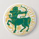 Sagittarius - Sternzeichen des Zodiaks auf einer Tasche. Grün, Gelb und Weiß. Tragen Sie es wie eine Brosche oder Mode-Accessoire.