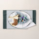 Belle serviette d'art Saint Bernard de Noël dressée pour ajouter une touche de vacances à votre décor de salle de bain.