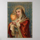 Das Bild des Heiligen Geistes von Assisi stammt aus einer alten europäischen heiligen Karte. Die Farben sind noch frisch und auffällig, und die ganze Karte Glitzer mit Goldprägung. Nach der Tradition warf Heiliger Clare eine Armee von Soldaten ab, die Assisi angriffen. Sie näherte sich ihnen mit dem gesegneten Sacrament in ihren Händen. Die Soldaten wurden mit plötzlicher Angst überwunden und flohen, ohne jemandem in Assisi zu schaden. Der Heilige Clare wird mit einem Monstranz gezeigt, der an dieses Ereignis erinnert.
