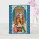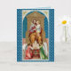 Cette empreinte dévotionnelle de l'Europe de l'Est de la fin du 19ème siècle représente Saint-Joseph assis sur un trône d'or recevant une maquette architecturale ou un modèle miniaturisé du Vatican symbolisant l'Eglise de deux anges agenouillés. Le Christ Child est un enfant en bas âge. Il se tient sur le genou de saint Joseph. L'Enfant Christ lève sa main droite en bénédiction et tient un spray de lys symbolisant la pureté dans sa gauche. Les mains de saint Joseph encerclent le tout-petit de manière protectrice comme une métaphore visuelle de son rôle de protecteur de l’Église. + St. Joseph est vêtu d'une robe bleu-violet ombragée de rouge-violet et d'un manteau marron dans les tons jaune-orange ; le Christ Enfant, une tunique blanche avec garniture jaune ; et les anges, en dalmatiques rouges et vertes complémentaires. + Fête Principale de Saint-Joseph : 19 mars ; Fête de Saint-Joseph le Travailleur : 1 mai + Crédit d'image (M 037) : Image antique de Saint-Joseph [Svatý-Josef], initialement imprimée en chromolithographie par Koppe Bellmann, Prague, Tchécoslovaquie (aujourd'hui République tchèque), fin 19e siècle, de la collection privée du designer ..