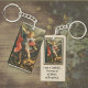 Belle image Saint Michel l'Archange tuant le diable des deux côtés. Texte : Je suis catholique. En coque d'accident, appelez un prêtre. Le texte peut être customisé.