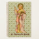 Saint Thomas l'Apôtre, aussi appelé Didymus (le "jumeau"), était l'un des Douze Apôtres de Jésus-Christ selon le Nouveau Testament. Après avoir d'abord douté de la Résurrection jusqu'à ce qu'il touche les blessures du Christ pour lui-même, saint Thomas a continué à évangéliser la Parthie, la Perse et l'Inde avec zèle missionnaire. Ici, il tient le carré d'un constructeur. Cet attribut comporte plusieurs explications à la fois littérales et symboliques. Dans une histoire d'origine, il érige le tout premier bâtiment de l'église en Inde de ses propres mains. Dans un autre, il construit un palais pour un dirigeant indien ; dans sa variante, il donne son tribut aux pauvres en expliquant le palais réel comme l'une des demeures promises par le Christ dans le ciel. La troisième explication est simplement symbolique de la construction de l'Eglise en Inde sur une base spirituelle forte. + Image Source (RLS 18) : Les détails figuratifs et ornementaux ont été extraits de l'image antique de saint Thomas l'Apôtre en chromolithographie avec des accents dorés illustrant le livre Red Letter Saints : Being a Series of Biographies of the Saints for that Approprier Collects, Epistles and Gospels are are nommé dans le Livre de prière commune. Imprimé par E. Kaufmann, Lahr, Baden, Allemagne, pour la Society for Advancement Christian Knowledge / S.P.C.K. (Londres, 1911), p. 8. De la bibliothèque privée du concepteur. + Fête : 3 juillet + Texte en rouge foncé (#460000) qui correspond au contour de la figure.