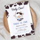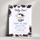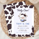 Préparez-vous à fêter avec notre Invitation pour l'anniversaire de la vache! Montrant une vache à bébé sur un arrière - plan bleu, cette invitation est accentuée par des bordures de taches de vache. Le texte personnalisable vous permet de personnaliser tous les détails de la fête, ce qui en fait le choix idéal pour la journée spéciale de votre petit.