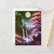 Sakora tree-Moonlit Waterfall with Cherr-pink Postkarte