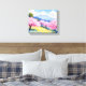 Ein Aquarellbild der japanischen Landschaft im Frühling, mit blühenden Sakura-Bäumen und dem fernen Fuji unter sanftem Licht.