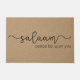 Einzigartige moderne Salamafarben-Typografie auf einem hellbraunen Teppichboden. Schön für sich selbst oder als Geschenk für jemanden, der eine niedliche ästhetische arabische Türmatte Liebe würde. Moderne islamische arabische Tür von Arabix.