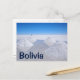 Postkarte der Trocknung von Säulen aus Salz mit Reflexion im Wasser gewartet für die Ernte auf dem Salar die Uyuni Salinen in Südbolivien mit dem Text: "Bolivien".