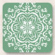 Dieses weiße Mandala liegt auf einem graugrünen Hintergrund. Die Farben sind natürlich und entspannend. Teil der Losonieth Mandala Kollektion.